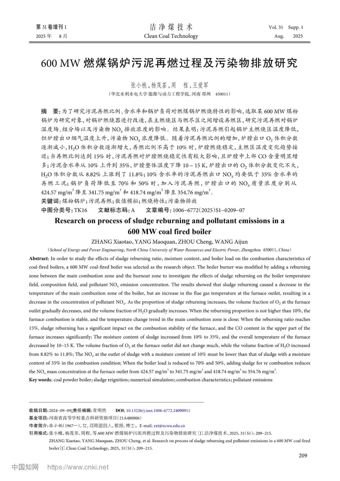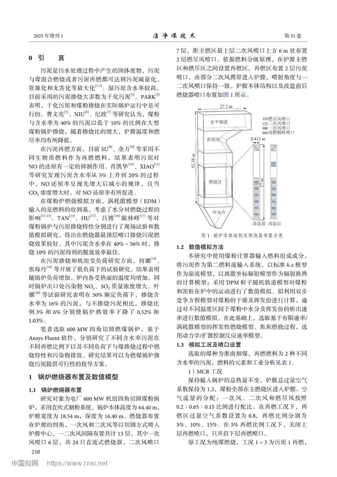 关键词:煤粉锅炉;污泥再燃;数值模拟;燃烧特性;污染物排放