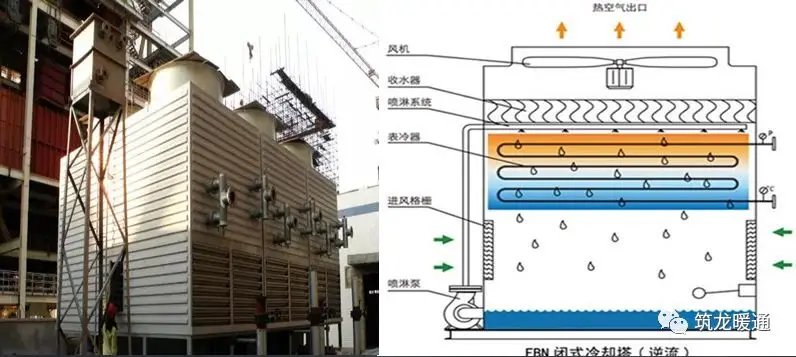 冷却塔有开式冷却塔、闭式冷却塔,闭式冷却塔与开式冷却塔的区别:
